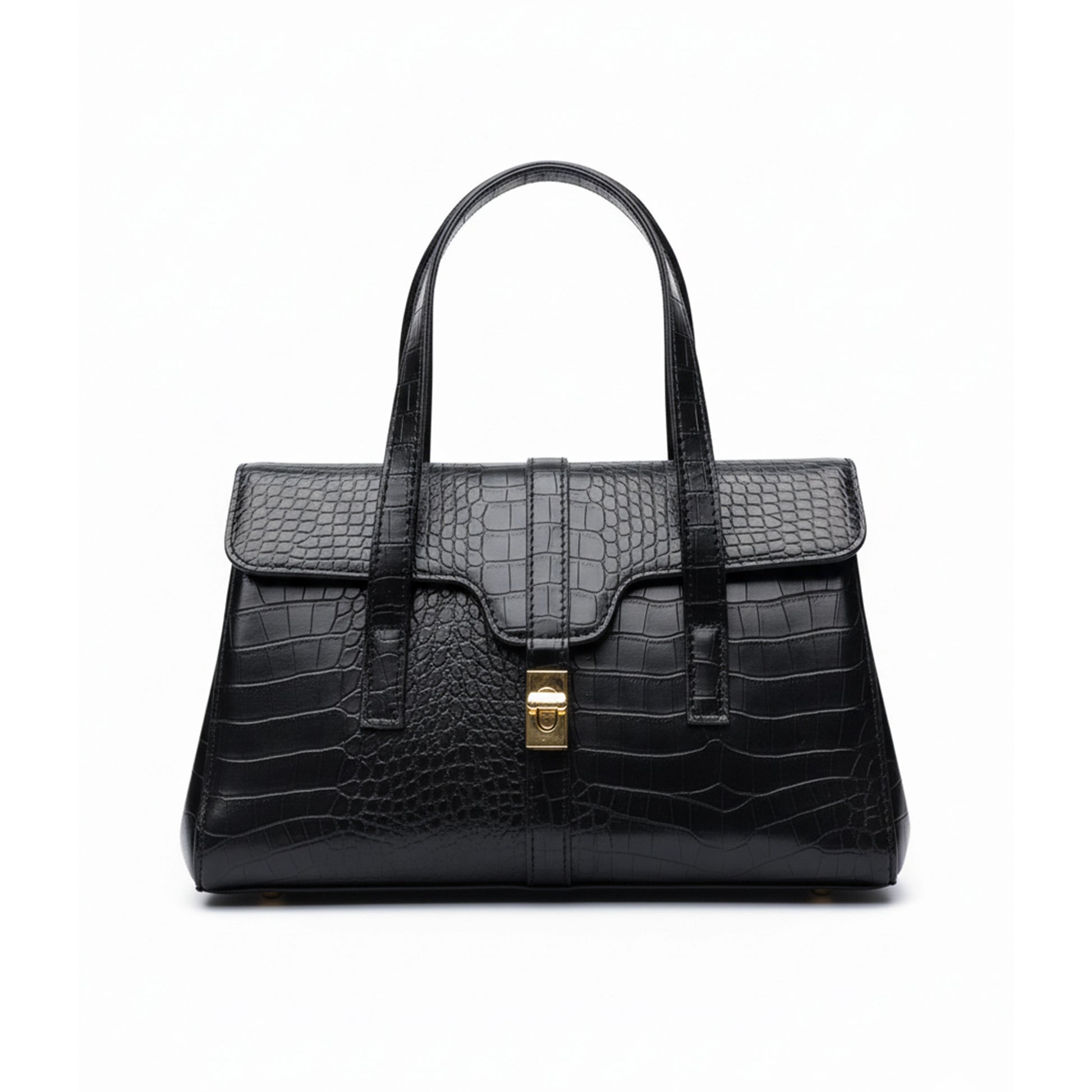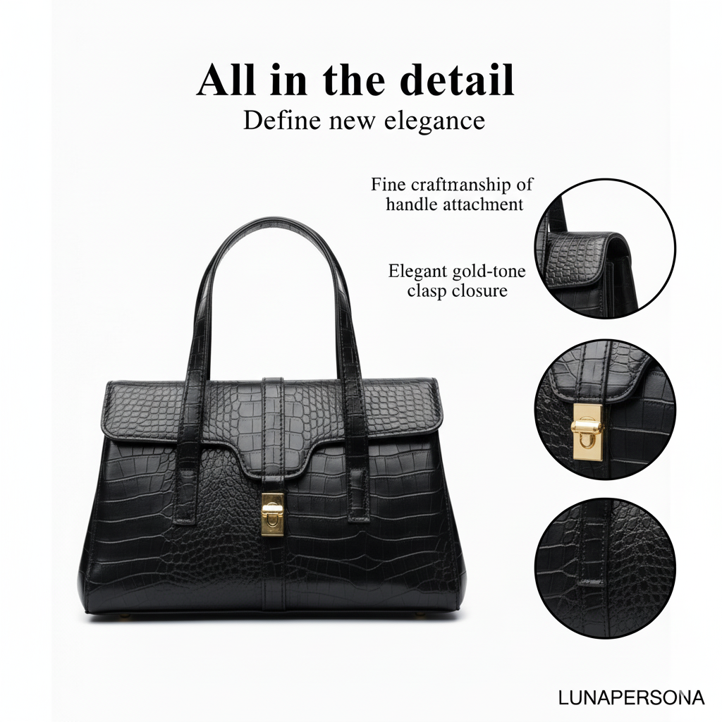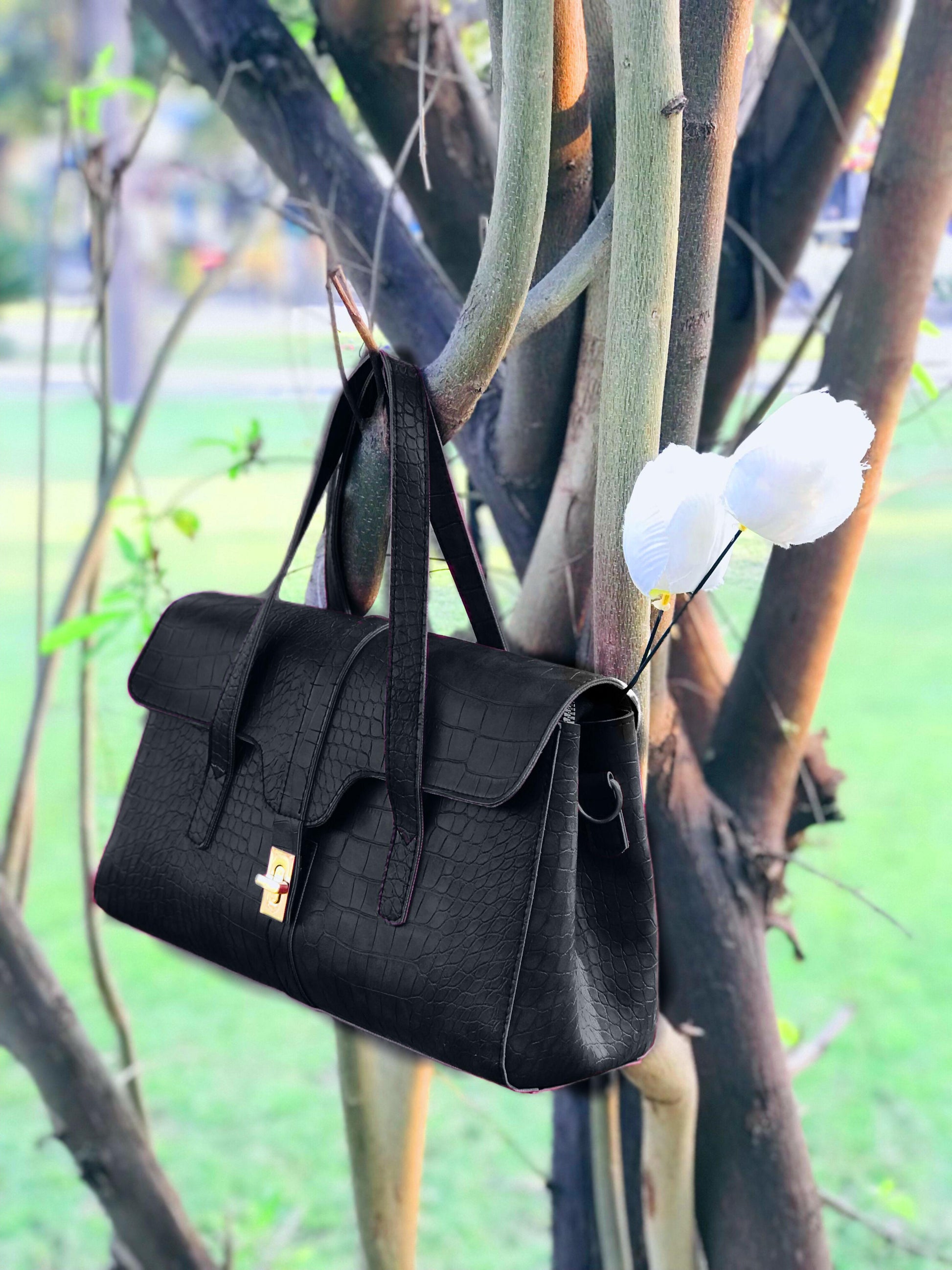 Command attention with a bag that speaks fluent luxury. Crafted in rich, croc embossed premium leather 🐊 with a refined turn‑lock clasp, this satchel pairs boardroom polish with all‑day practicality. The silhouette is structured and timeless; the finish is bold and confident made for women who lead. 💼